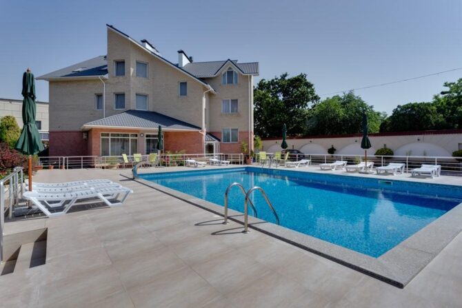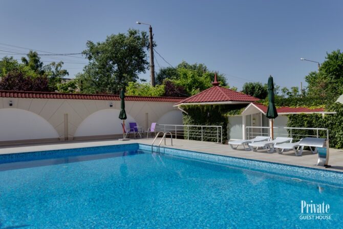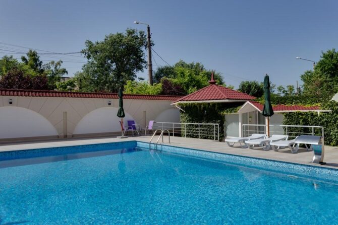 Hotel Privat in Evpatoria is the best guest house in the city for recreation. It is a 5-minute walk from the sea. Sunbathers have the opportunity to take sunny treatments on site by the pool, for this purpose guests are provided with sun loungers and umbrellas. A great rest will help to complement the sauna. The restaurant is equipped with a summer terrace. The hotel is equipped with all the latest security systems.