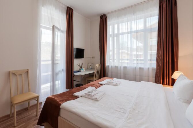 Marina and Ruslan, Tyumen: Sochi, Krasnaya Polyana, Rosa Khutor – places of power. It is very beautiful, you can feel the energy of the mountains. Some small flaws in the hotel simply do not notice, any room is doomed to success. But in the hotel I really liked, everything is on top, the service is amazing, beautiful, clean, romantic and cozy. Coffee and tea in the room, it is important for us, as we like to get up early and drink coffee when meeting the dawn. The rooms are good soundproofing, there lived a family with children nearby, but we did not interfere with each other. The hotel is definitely recommended, it is worth the money.