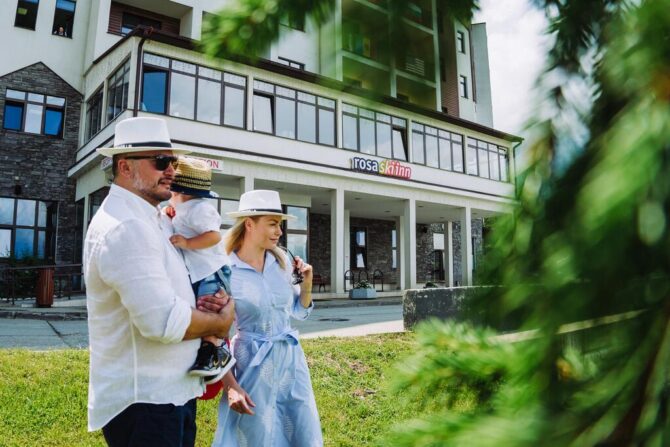 Rosa Khutor boasts a good tourist infrastructure that includes hotels, restaurants, shops, ski slopes, hiking trails, cable cars and an indoor water park.