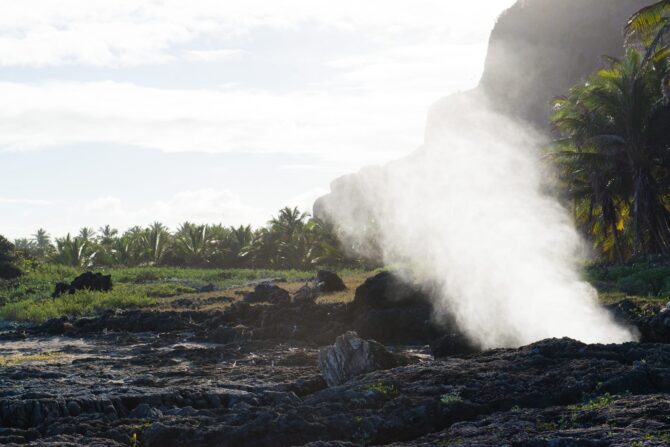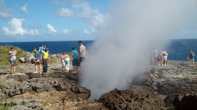 In order to test the strength of the water, throw a large coconut inside the crevice, knowing in advance when the splash will follow. It is not difficult to imagine that very quickly the nut quickly flies out a few meters upwards, and the stream can knock down observers if you get very close.