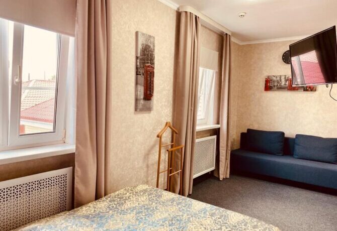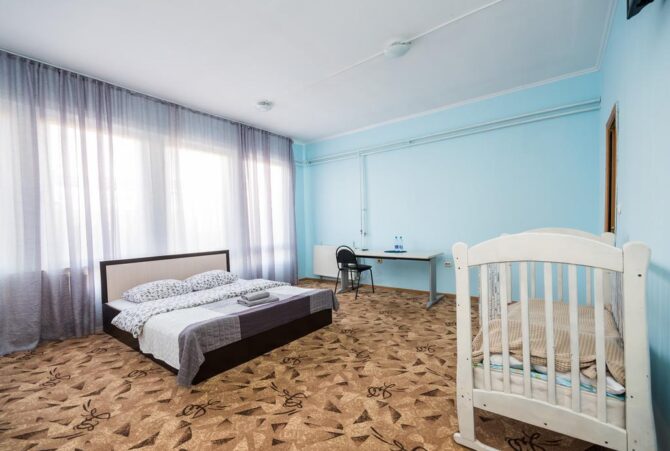This 3-star hotel is located in Khimki. The main feature is the established check-out time of settlement. All rooms have individual design and floors lined with natural wood. A shared breakfast is served in the restaurant in the morning and an à la carte kitchen is available throughout the day. For relaxation there is a sauna and a billiard room, for children – a playground. A free transfer is provided for transit passengers.