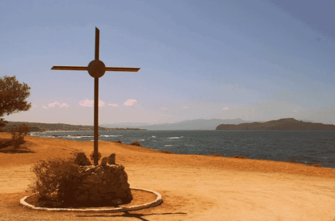 On a low rocky cape near the beach “Iguana” is a small temple, in whose honor the resort is named. The chapel of the Holy Apostles is surrounded by several fluffy pines. A small building of the temple can not be immediately seen among the trees. From here you can enjoy wonderful views of the picturesque bay. Tourists come to this place on summer evenings to admire the bright colors of the Cretan sunsets.