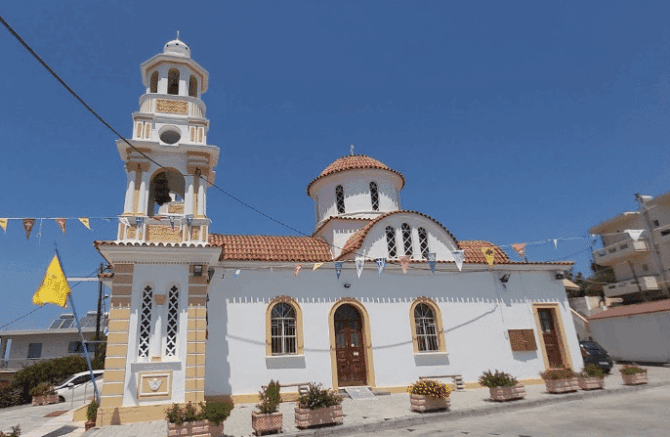 In the southern part of the resort village among the hotels stands the building of a new temple – the Church of St. Panteleimon. The structure is decorated with a large dome of dark brown color and two towers-belfries. The bell towers are noticeably higher than the church. The religious building is located in the place where st. Panteleimon Street intersects with the road going from Kissamos to Chania.