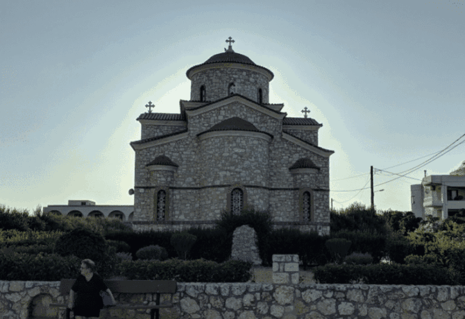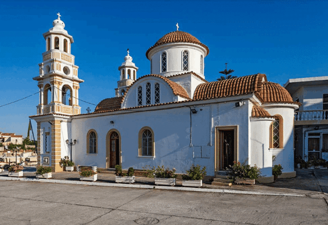 In September 1992, a new church was opened in the resort village – the Church of St. Fanourios. The ritual building is named after an Orthodox saint who lived in the III century. Fanourios means “being”. The saint was called Rhodes, as archaeologists found his icon on Rhodes, a famous Greek island.