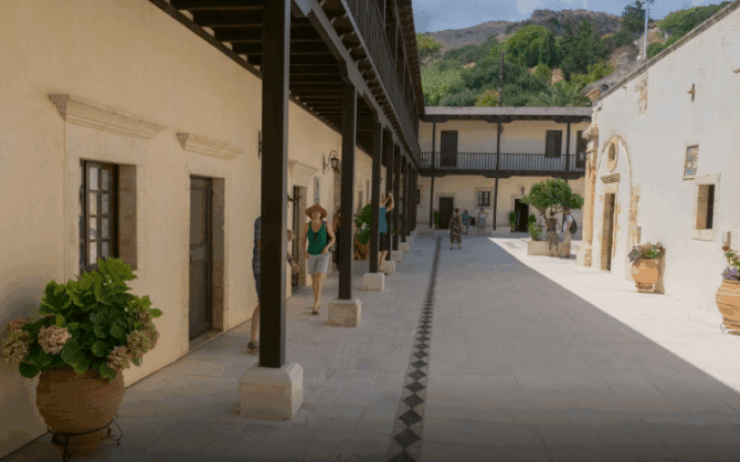 Among the icons placed in the main temple, there are several images painted in the XVI-XVII centuries. Among the authors there are the names of such famous cretan monks in the past as the Nile, Ritsos and Parthenius. The monastery complex can be visited daily from 8:00 to 12:30 and from 16:00 to 20:00 (in winter – from 15:00 to 17:00).