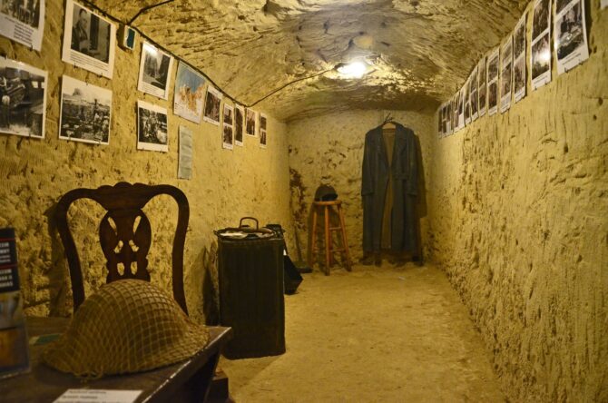 After the war, the locals began to use the shelter as a large pantry. For this purpose, the tunnels provided ideal conditions: dry, warm, constant temperature + 23 degrees. Since 2013, the former shelter has functioned as a Memorial Museum. In the long tunnels there are exhibits telling about the struggle of the Cretan inhabitants with the German occupiers: