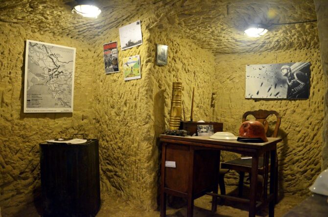 The place for the construction of the shelter was not chosen by chance. A low hill, inside of which tunnels are dug, consists of limestone – soft rock. The shelter was located under the foundation of the Church of St. Demetrius. The temple protected the tunnels from aerial bombardment.