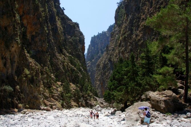 Unlike the Aposelemis Canyon, the Samaria Gorge is one of the main tourist routes of Crete. In 1962, this area received the status of a National Park. The length of the gorge is about 13 km, the reserve itself covers an area of 4850 hectares. The entrance is located at an altitude of 1250 meters above sea level. Tourists gradually descend to the bottom of the gorge along mountain trails and stone steps. For a physically unprepared person, such a walk for 3-4 hours will become tiring. Before the trip, you need to calculate your strength.