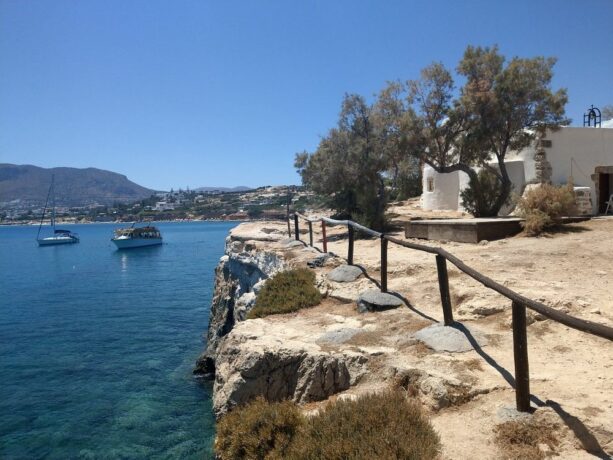 In the north-west of the village, in the sea is the island of Dia, resembling the outlines of a large animal floating on the water. Archaeological excavations of an ancient settlement of the Minoan period are being conducted on the island, but tourists are not allowed there. The main attraction is a small cave that attracts diving enthusiasts. Here you can swim with a mask, snorkel, scuba diving, photograph the underwater world. No one lives on the island, and this is its main charm. In order to get to the island, it is best to hire a fishing boat. Local residents are very friendly to the guests of the village, and help them as soon as possible to settle in the resort.