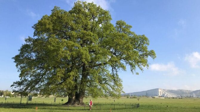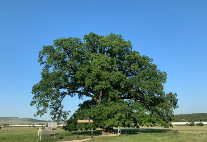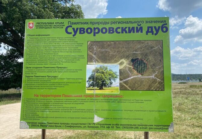 To the north of Belogorsk is located Apple. This small village became famous thanks to the unique Suvorov oak. The tree got its name because of an important historical event that occurred under its crown. According to legend, at this place in March 1777, A. V. Suvorov negotiated with the envoy of the Turkish sultan. In 1997, the oak received the status of a natural monument. The tree surprises with its characteristics: