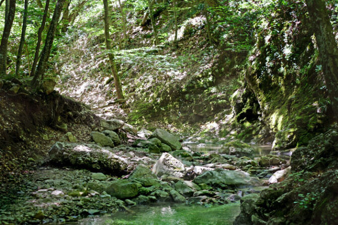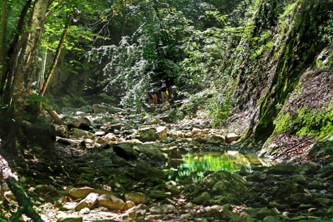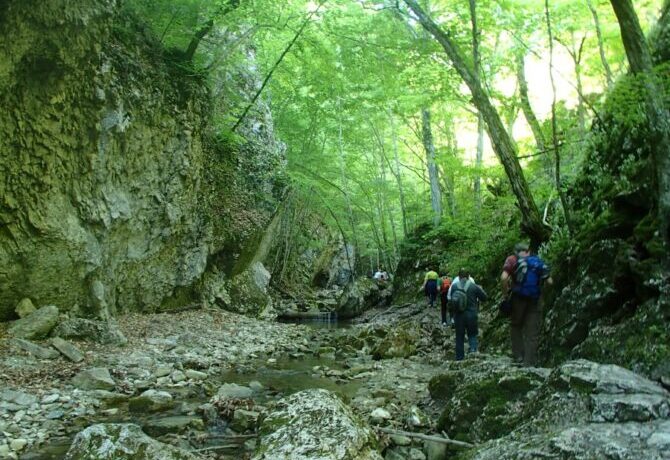 It was the flow of water that led to the formation of the gorge. This process, which began tens of thousands of years ago, continues today. The width of the canyon is from 300 to 500 m, the height of the steep walls is from 10 to 15 m. Along the way you can see thickets of fern, beech and other shrubs, grasses and trees.
