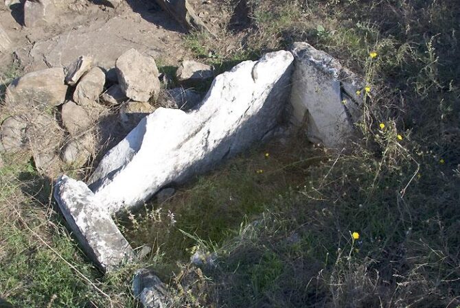 Kemi-Oba is located about 7.8 km east of Belogorsk north of the village of Dozornoye. Now you can see the hills and stone ruins. Tourists can get to the burial ground from Belogorsk on the road going to Feodosia. After turning to Dozornoye, after a few hundred meters you should turn right and continue along the trails to a place where stone blocks stand out on the slope of a high mound are clearly visible.