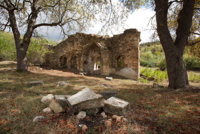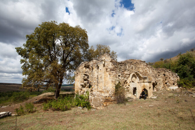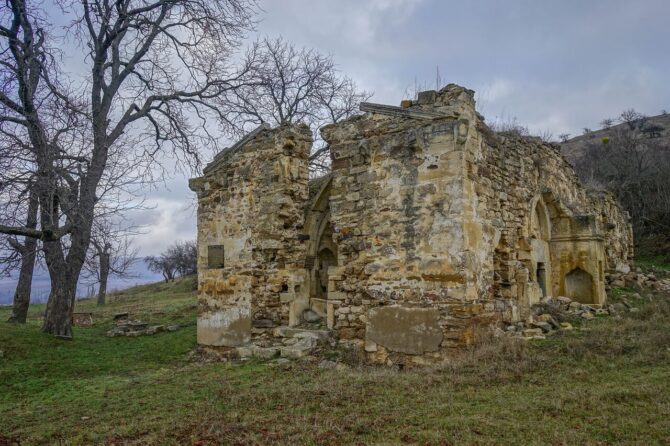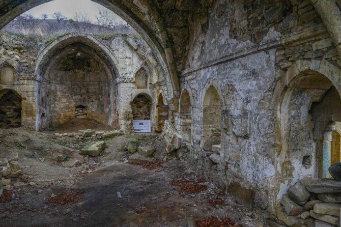 Not far from the building of the City Administration in the place where four streets converge – Lunacharsky, Tolstoy, Bekir Choban-zade and Sadovaya – there are ruins of an ancient Crimean Tatar building. Tash-Khan is the name of the caravanserai, built around the XV century.