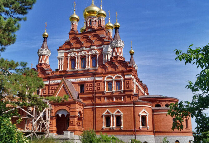 St. Nicholas Cathedral, located 230 m south of the caravanserai Tash-Khan, has been rebuilt many times. The building, which appears to visitors now, is an Orthodox church with a bulbous dome and a small new belfry. The bell tower was built relatively recently, in 1989.