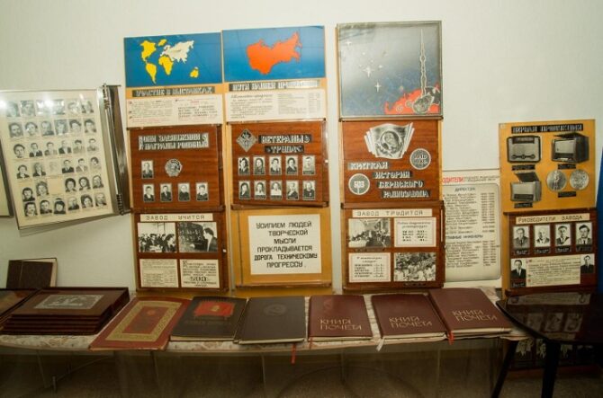 In the room, which is located on the seventh floor of the former administrative building of the radio plant (PO “Vega”), now houses a historical exhibition of radio equipment. Here are the goods that the plant produced from 1947 to the last working day of this enterprise. In addition to 627 exhibits, the exposition contains photographs and documents.