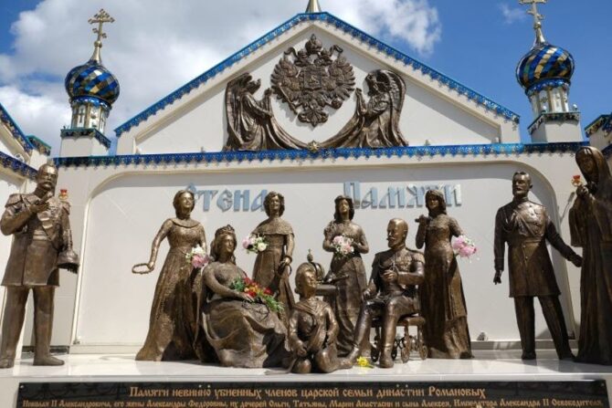 The sculptural composition dedicated to the Romanov royal family was opened in 2018. A talented sculptor and artist – Isakov worked on its creation. The work on the creation of the memorial wall lasted a whole year. The composition depicts Nicholas II himself along with his wife, daughters and other family members. Over the Romanov family is applied the royal coat of arms. He is held by two angels, made in the form of bas-reliefs. The royal family was made of bronze in full size.