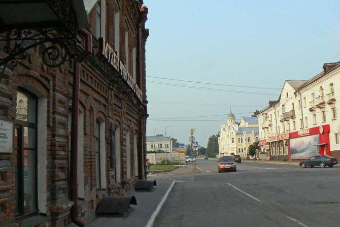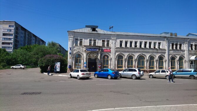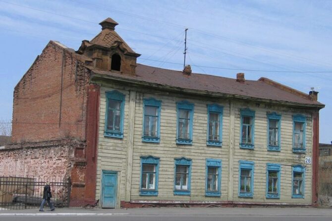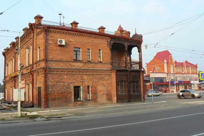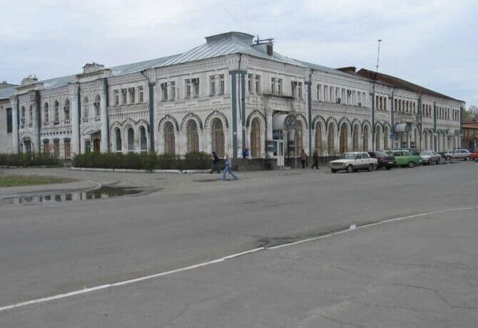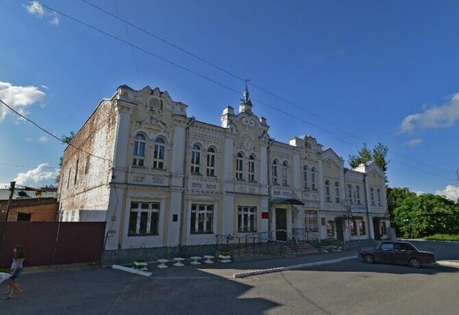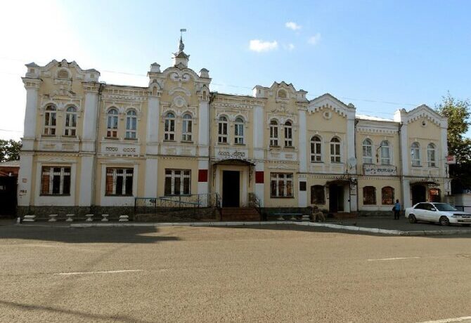 The Mezentsev House is an architectural landmark of the city. It is a fairly large two-story building made of brick. The building was erected in 1910. On the first floor there were trading halls, and on the second floor there were living rooms. Four years later, the post and telegraph office moved into the building. Now it is a branch of the Russian Post.