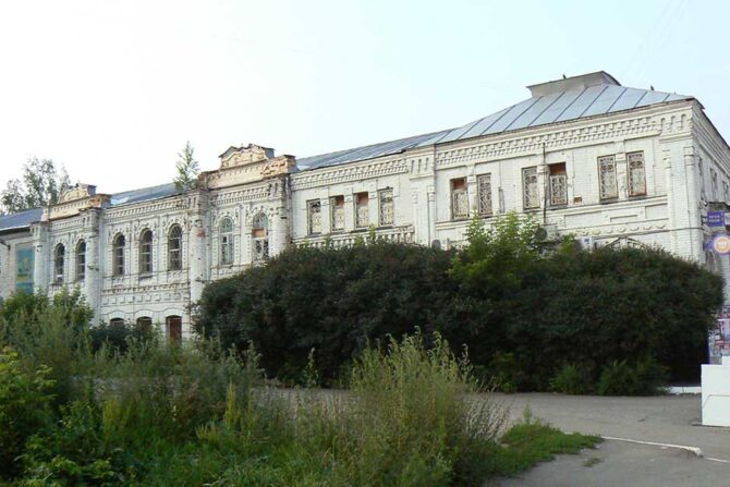 One of the most luxurious buildings in the city of Biysk is considered to be the Trading House of the merchant Ignatiev. Shopping arcades were built in 1914 and literally immediately local shops began to work actively in the building. The trading house is made in the style of Siberian Baroque. Its facades were decorated with many decorations.