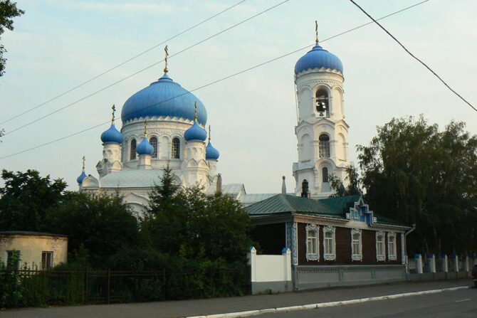 Snow-white Uspensky is the most recognizable building of Biysk. It rises majestically over the historic part of the city and has been the House of the Lord for many parishioners for many years. The cathedral was built in the Russian-Byzantine style. It is decorated with blue domes. And above its heads and the central rotunda rises a three-tiered bell tower. The temple was built with money collected by local residents and merchants. In 1903 it was consecrated.