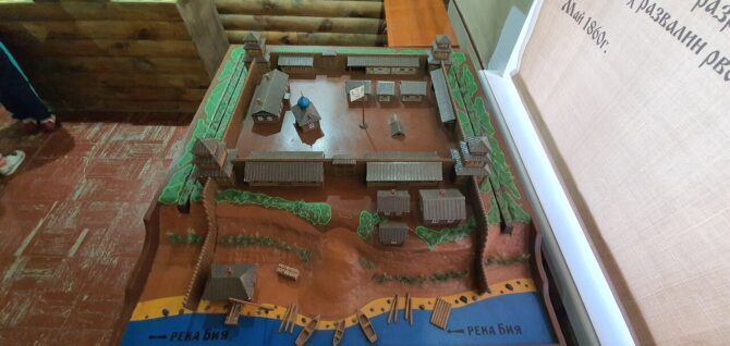 Biysk fortress was a guard fortification, which was built in 1718 on one of the banks of the river Biya. The wooden structure in the plan was quadrangular. The perimeter of the walls was 200 meters. In the corners were installed three-story towers, the height of each 15 meters. In addition to the walls, the protective function was performed by an external defensive fence, consisting of a moat, hollows and slingshots. Inside the fortress itself were built barns, a powder cellar, the commandant’s house, a cookhouse, a chapel. The fortress was located in the place where now in modern Biysk there is a square named after Fomchenko.