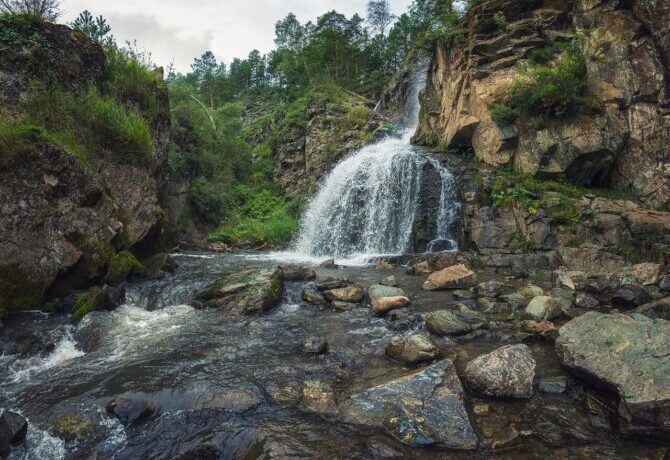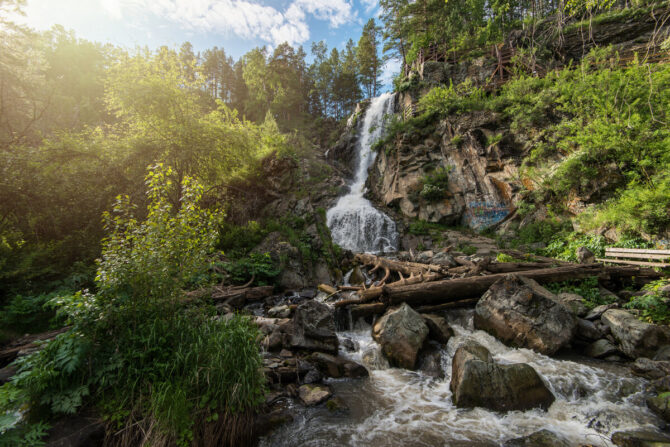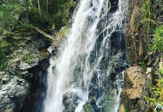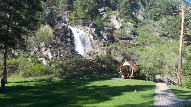 Another natural attraction, located on the left bank of the Katun River, is the Kamyshensky waterfall. This is one of the most accessible Gorno-Altai waterfalls. It is located in the Shebalinsky district, just 400 meters from the mouth of the kamyshla river. The nearest villages are Barangol and Ust-Sema. In 1996, the waterfall became a natural monument of republican significance.