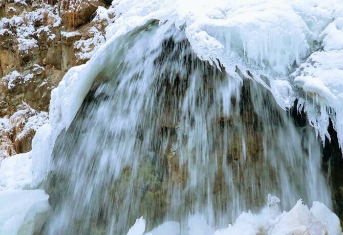 In winter, the waterfall freezes, but does not cease to attract the gaze of vacationers. In winter, people come here for bright photos against the background of frozen cascades.