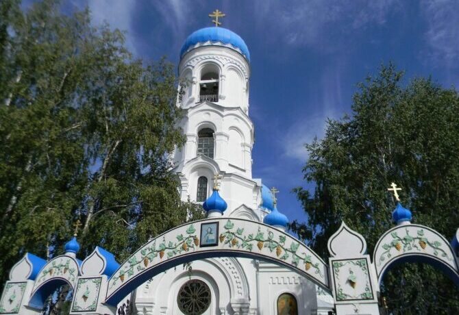 A team of religious builders from Western Ukraine worked on the construction of the temple. The project of the future temple structure was based on the architectural plan of the KorobeynikovSkaya Church. Construction lasted almost two years. The iconostasis was made by employees of the association “Sibpribormash”. The painting of the iconostasis was done by Vladimir Cheprov. He also painted the inner walls of the temple. In 1993, the domes were consecrated. The first crosses, which were made at the plant in Biysk, broke from a strong gust of wind. Later they were ordered in St. Petersburg, where metal coated with zirconium was used for the production of crosses.