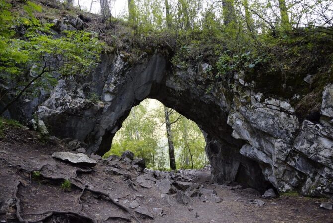 The most visited of the entire system is the Big Tavda Cave. It is also called “Tavdinskaya-1” or “Maiden tears”. The entrance to it is just a few meters from the road.