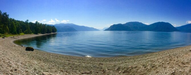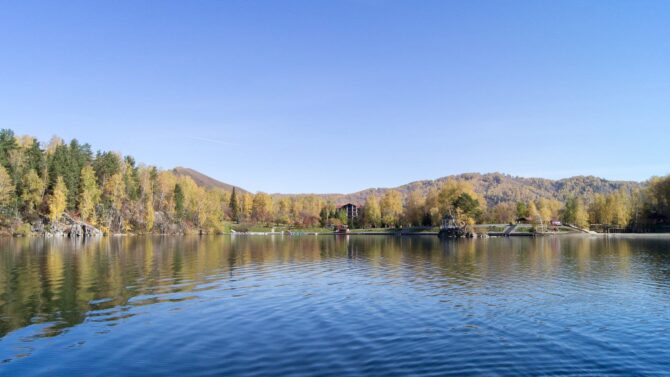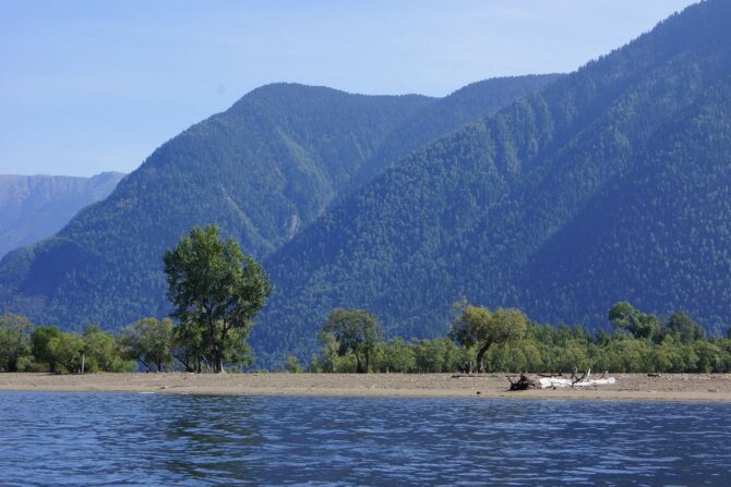 Teletskoye Lake is located at an altitude of 434 meters above sea level. Partly belongs to the Ulagansky, and partly to the Turochak district. The length of the reservoir is 77 km, in the widest place the water spills up to 5 km. The shape resembles a mirror-inverted letter “G”. About 70 rivers flow into the lake. Thanks to the crystal clear water, you can see the bottom at a depth of 10-14 meters. The maximum depth of the lake is 325 meters.