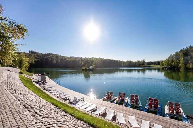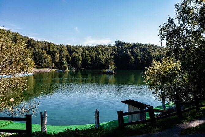The lake has a well-developed tourist infrastructure. Water slides are installed, boats and catamarans are rented. Nearby there are hotels, guest houses, camp sites, which allows you to stay in this amazing region for several days. All bases are engaged in the organization of excursions. Discos are held for young people.
