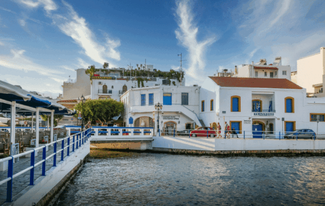 On the island there are hundreds of small towns and villages that attract the attention of foreign tourists. One of them is Agios Nikolaos, founded, according to official data, in 1881 Since the 1980s, this compact city, located in the west of the island on the shores of Mirabelon – a picturesque bay – is known as a thriving seaside resort.