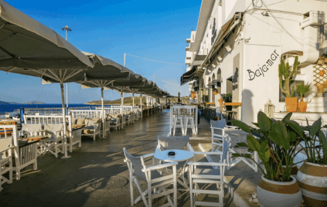 The town has a sandy beach, which stretches for 13 km. Guests of the resort are happy to sunbathe, dive, water ski or swim in the warm sea. Near the strip of beaches stretches a string of cozy taverns and restaurants: