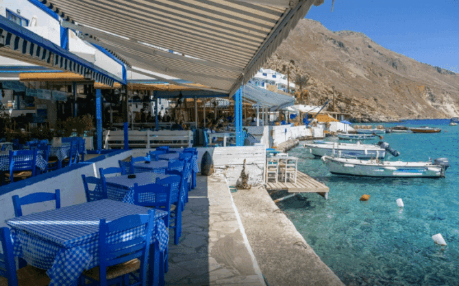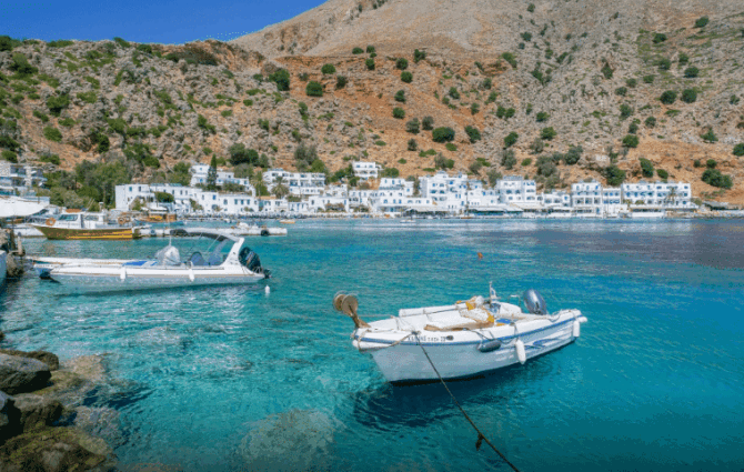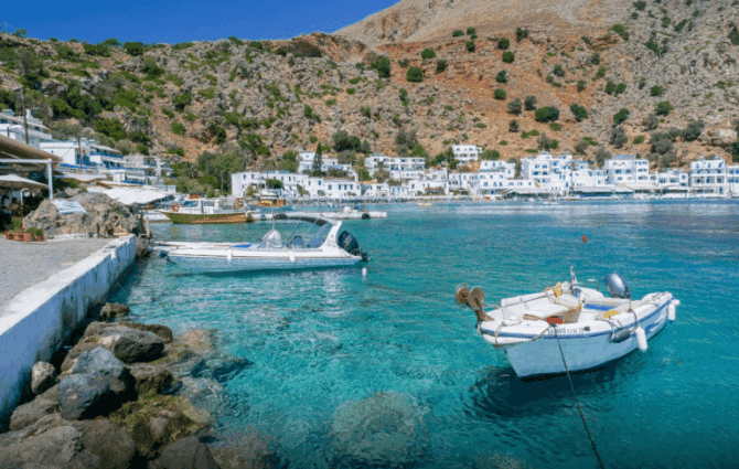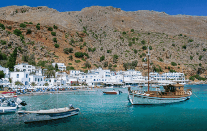 There are always many tourists who dream of an isolated holiday surrounded by picturesque landscapes. The village of Loutro, located 36 km (in a straight line) south of Chania and 97 km southwest of Heraklion, is ideal for this purpose. In the vicinity of this compact resort, where no more than 100 people live, there are no roads and noisy cities.