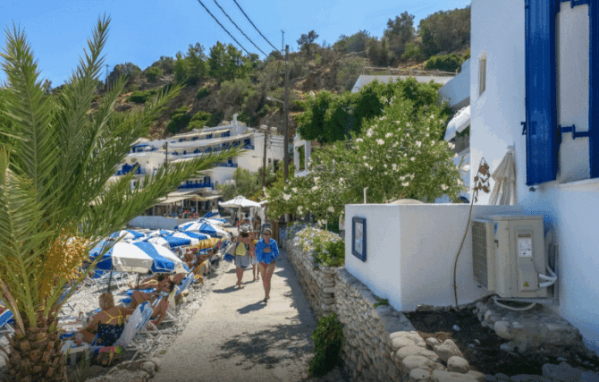 These places will suit fans of a quiet pastime away from crowded tourist routes. The sparse vegetation of the plains, stone gardens and thickets of shrubs – all this is met by travelers on the way to Xerochambos. Tourists who have reached the village can stay in local villas and cozy apartments. For those who want a snack or a hearty lunch, the doors of taverns are open: