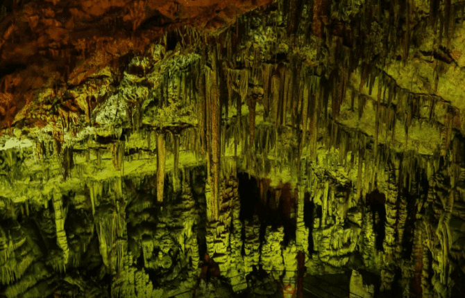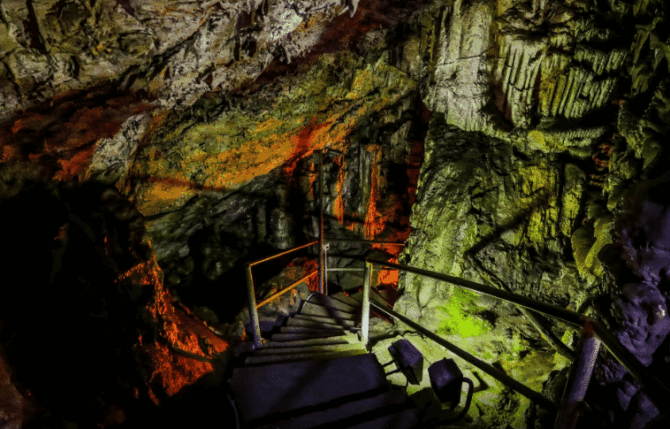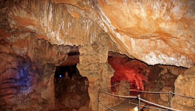 Not far from the entrance to the cave, located at an altitude of 1024 m, a spacious parking lot is equipped. Here you can quench your thirst or hunger in one of the taverns. Several trails lead from the parking lot to the entrance to the cave. The distance that travelers have to overcome is about 800 m. The cost of the entrance ticket is 6 euros. The cave is open to the public from 8 am to 3 pm. From May to October, access stops much later – at 20:00.