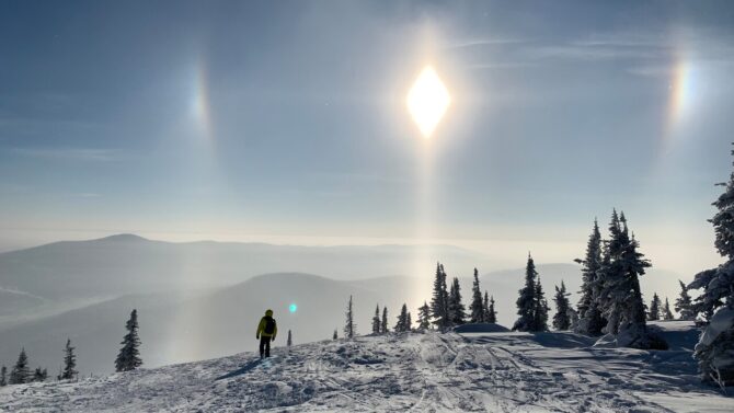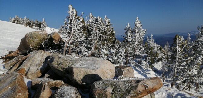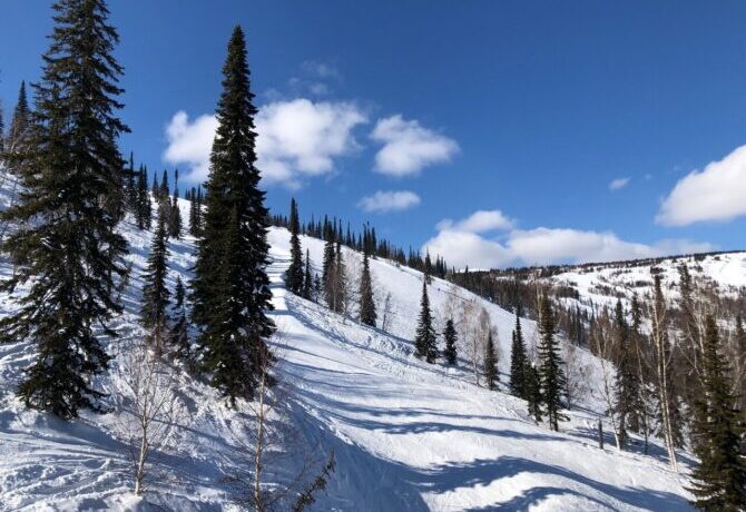 The chip of Sheregesh is a freeride route, and because of the viscosity of snow and the combination of temperature and humidity, avalanches or landslides practically do not happen.