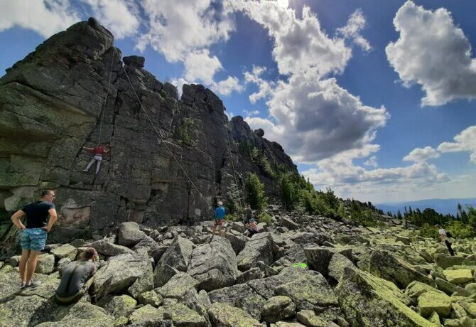Not far from the resort of Sheregesh with Mount Mustag. For the comfort of tourists, there are three cordons in different places of the park.