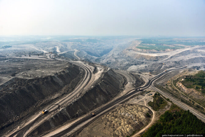 The Kedrovsky coal mine (part of Kuzbassrazrezugol Management Company) is one of the main deposits in the Central part of Kuzbass, located 25 kilometers from Kemerovo. Coal here is mined in an open way and it looks truly epic.