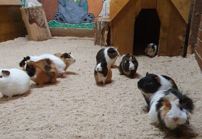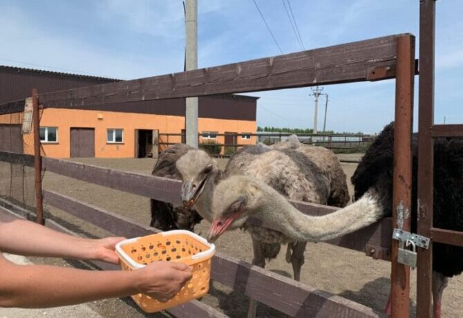 The main specialization of the ranch is black African ostriches, but there are many other animals: ponies, goats, deer, pigs, rabbits and even the donkey Tessie. The farm is clean (as far as possible), cozy and comfortable.