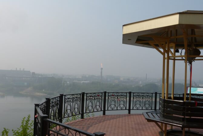 - Views: to the left – to the city, to the right – to the infernal industrial zone with a coke torch.
