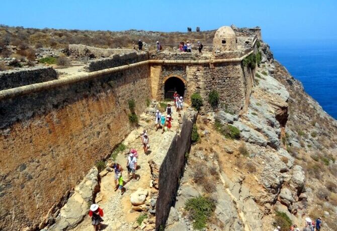 The fortress for all the time of existence was rebuilt several times. The very first fort in the territory of Kissamos was built by the pirate Henry Piscatore in the 13th century. In 1204, the Venetians expelled it from the citadel, fortified it and made it the central defensive point of the coast. It was destroyed several times. First, the Venetians themselves, when they left the island, then in 1538 It was done by Barbarossa, in 1595 – a powerful earthquake, in 1646 – by the Turks. Each time the fortress was restored, and it was again ready to protect Kissamos from enemies. Even today, the dilapidated walls impress tourists with their power and height. On the territory there are buildings built during the occupation of Crete by the Ottoman Empire.