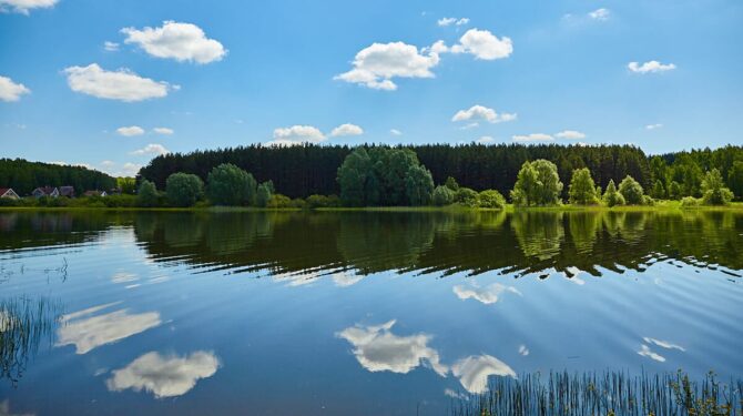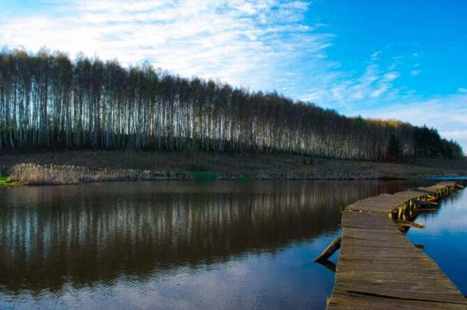 For those who want to fish, we inform you that there are perch, redfish and even pike. The shore of the lake is sandy, the entrance to the water is safe and gentle – it is good to relax with children. In summer, the water warms up to +23, and it seems that you are at sea, especially to the cries of seagulls.