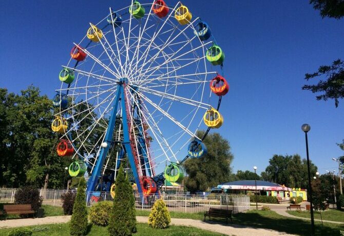 Even in a small town, the park “Oaks” is considered miniature, but the locals love it very much for its comfort, accuracy and a wide variety of plants. On its territory walk, rollerblading, skateboarding, for this there is a specially equipped platform. On a hot summer day, you can take refuge in the alley, in the shade of oaks, and for lovers of active entertainment there are attractions and a Ferris wheel. Residents and guests of the city have good impressions of the park, as in their garden, where strawberries grow on the lawns.