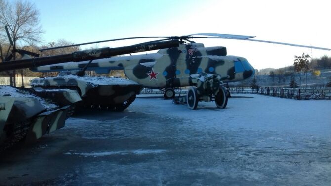 In the city Victory Park there is a small corner with exhibited equipment of the war years. It is impossible to call it a full-fledged museum, there are not so many exhibits, but it is still very interesting to look at, and for children even climb on the technique.