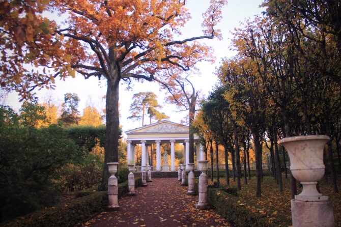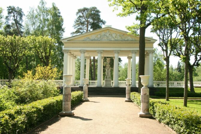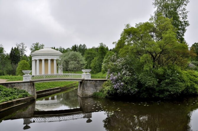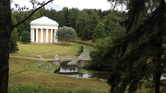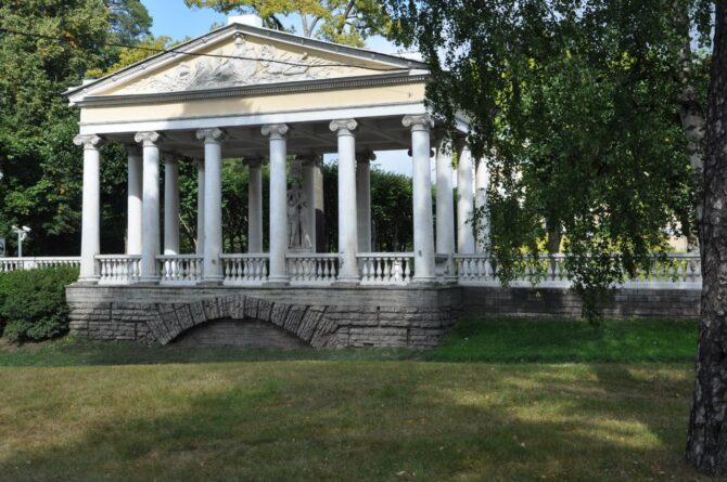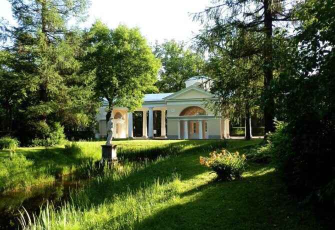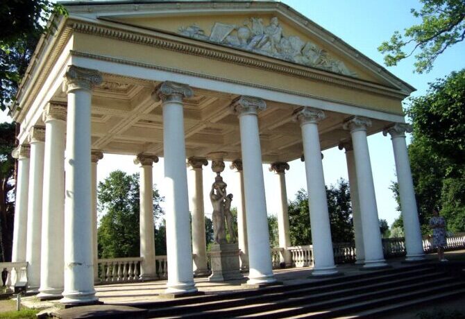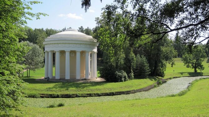 This masterpiece of classical park architecture was built by Charles Cameron in 1782. The Temple of Friendship is located on the peninsula formed by the Slavyanka River, and is an integral part of the landscape, creating a harmony of architecture and nature.