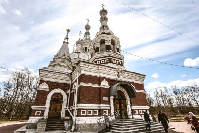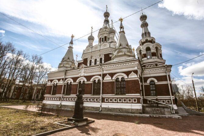 The Church of St. Nicholas the Wonderworker was built in 1900-1904 by the architect A. I. von Gauguin, in memory of Emperor Paul I. The Orthodox Church of St. Nicholas the Wonderworker was built on the site of a wooden church built in 1841 for soldiers of an exemplary cavalry regiment.