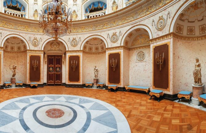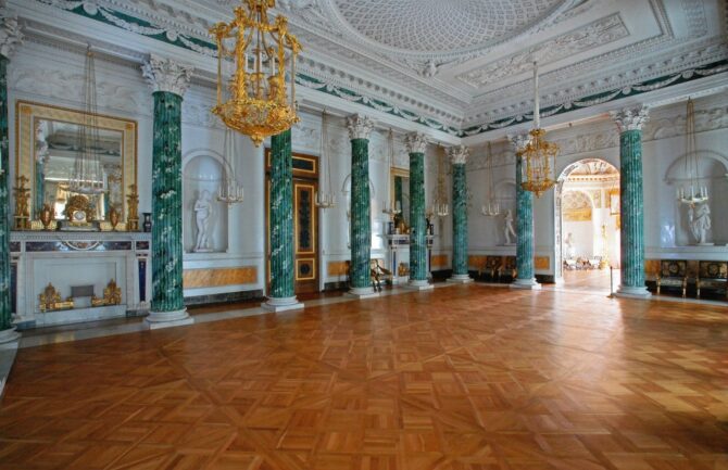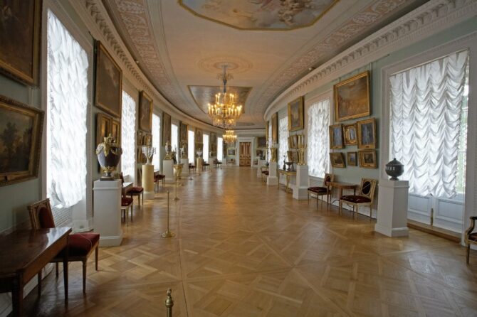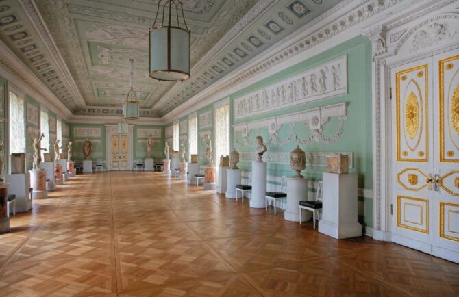 The elegantly decorated halls contain first-class works of art bought or commissioned by the owners of the Pavlovsk Palace and donated by European monarchs in 1781-1782. At that time, Paul I, while still Grand Duke Pavel Petrovich, went on a trip to Europe with his wife under the name “Count and Countess of the North”.