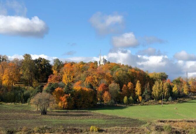The original name of this attraction is the church of Paul I or the monument to Paul I. It was built according to the project of J. Thome de Thomon and is the architectural dominant of the Pava Park.