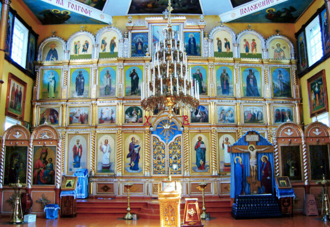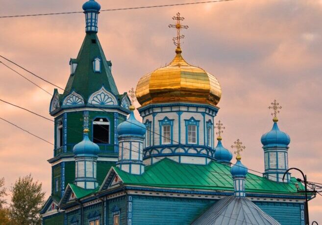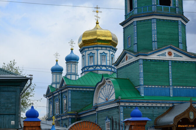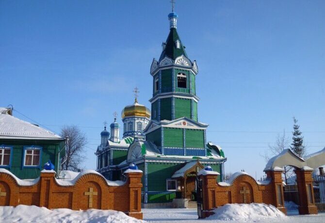 For more than a century, the majestic Mykhailo-Archangel Cathedral has served people. It is built of wood in the tradition of Siberian architecture. For the compositional solution, a typical nave for Siberia (a ship with a mast-bell tower) was chosen. The building has an oblong shape, the middle hall will interfere with up to 400 people. The territory is surrounded by a brick fence. Nearby there is a public transport stop “Church”.