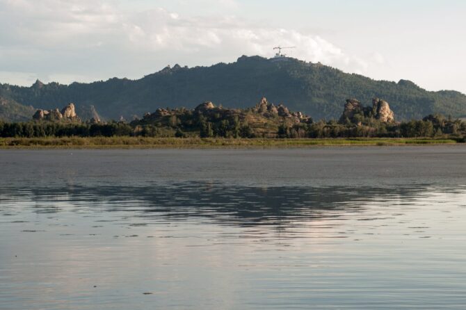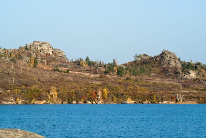 In two hours you can get by car to the main lake of the surrounding area – Kolyvansky. This is the most visited natural attraction. Here are the main camp sites, places of organized recreation (entry 50 rubles. per person or 300 per car). Tourists are attracted not only by the clean and warm water of the flowing lake. Nature itself has created a bizarre landscape design along the coast. It is strewn with granite rocks-remains of the most amazing forms. On the shore there are equipped beaches, wild wetlands, rocky elevation. Everyone who wants to relax in nature will find a place to their liking.